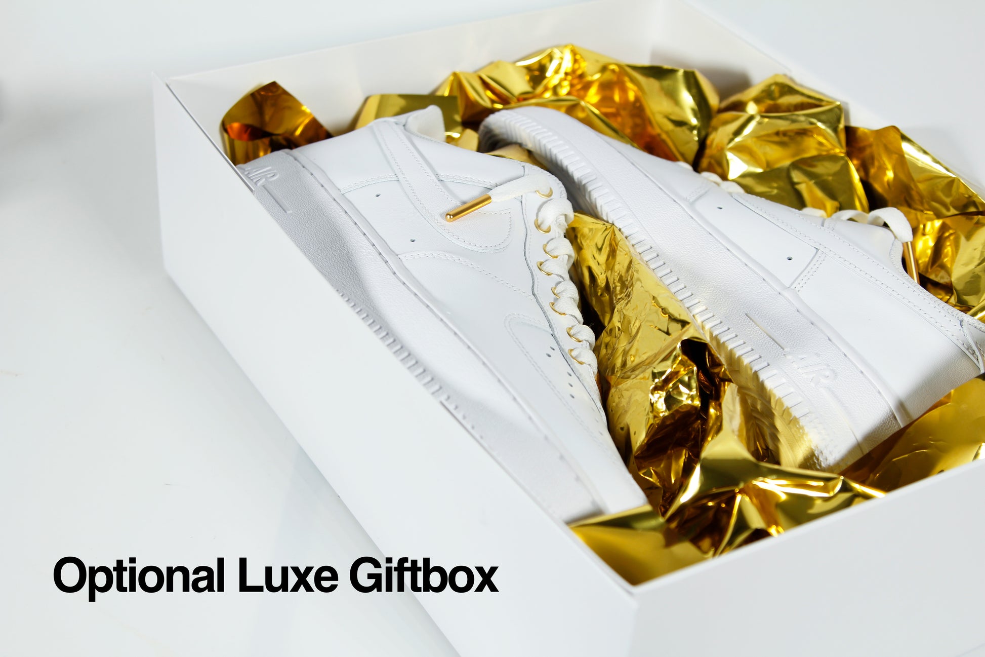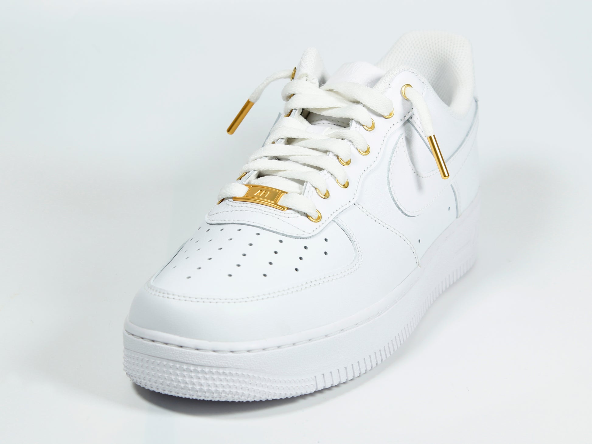 All gold elements shown are after market customizations of AF1 triple whites purchased from major retailers. Allow 1-2 days for shipment.